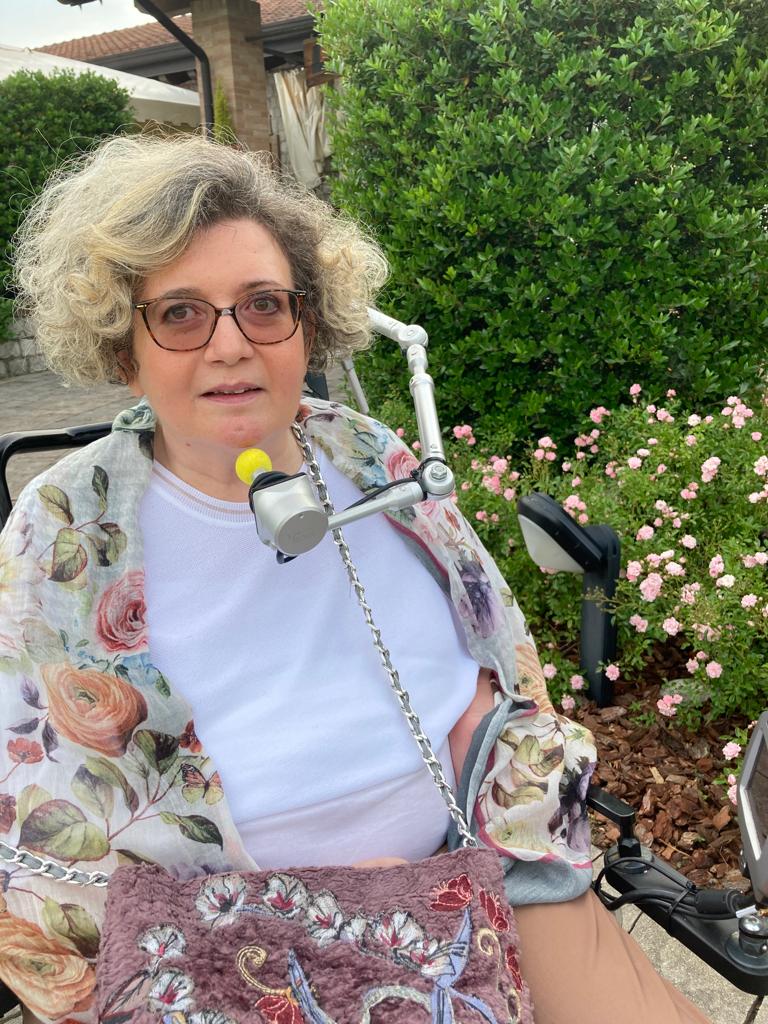 Le persone più importanti nella mia crescita artistica sono stati i miei genitori che mi hanno lasciata libera di esprimermi, stimolando la curiosità creativa e insegnandomi a non fermarmi mai, anche quando la progressione della malattia mi obbligava a rallentare. Voglio citare anche le mie insegnanti di pittura come Flavia Rossignoli nell’arte therapy, Mariella Aldrighetti e Laura Poffe che mi seguono da alcuni anni nella pittura con la bocca.