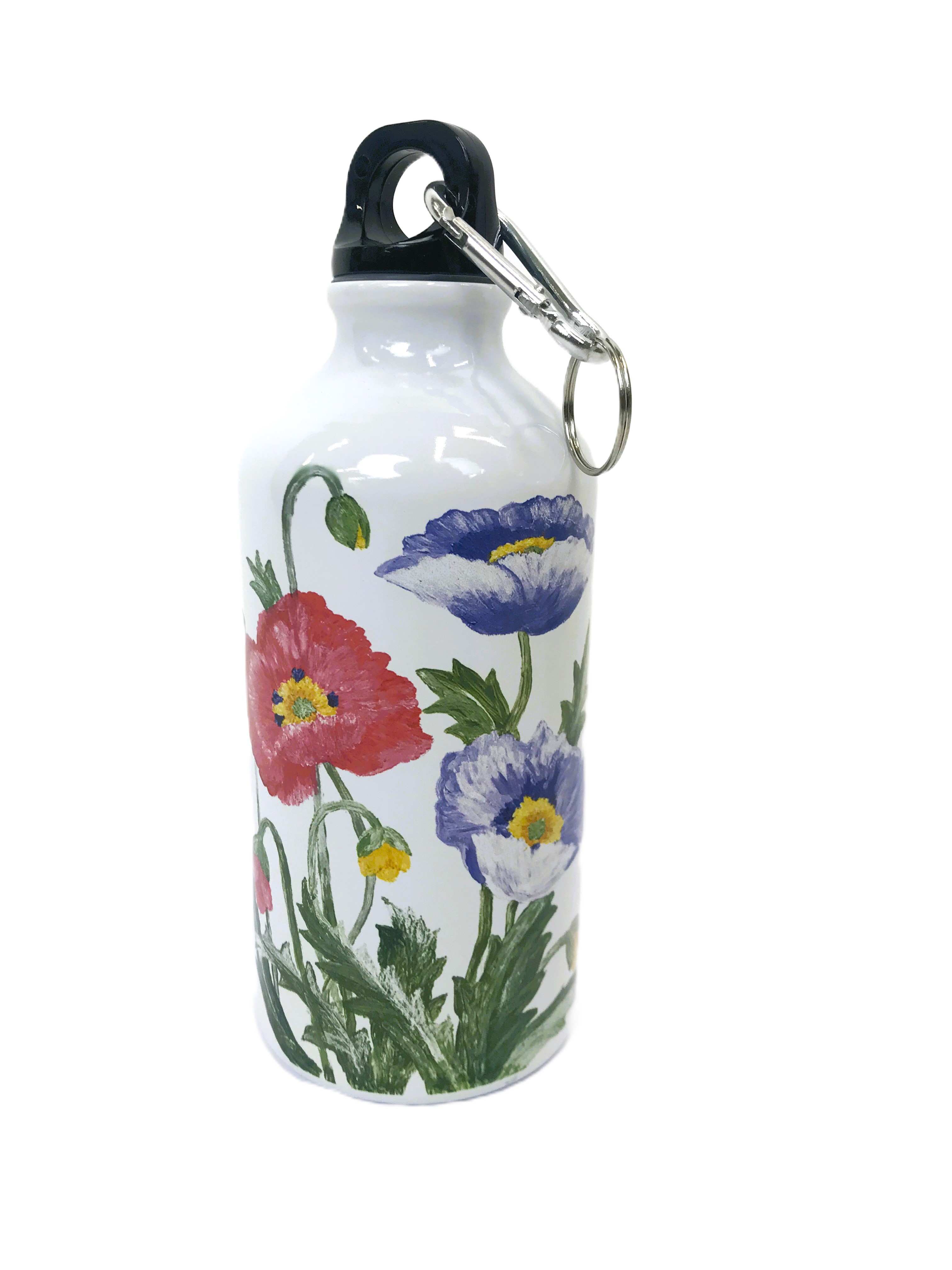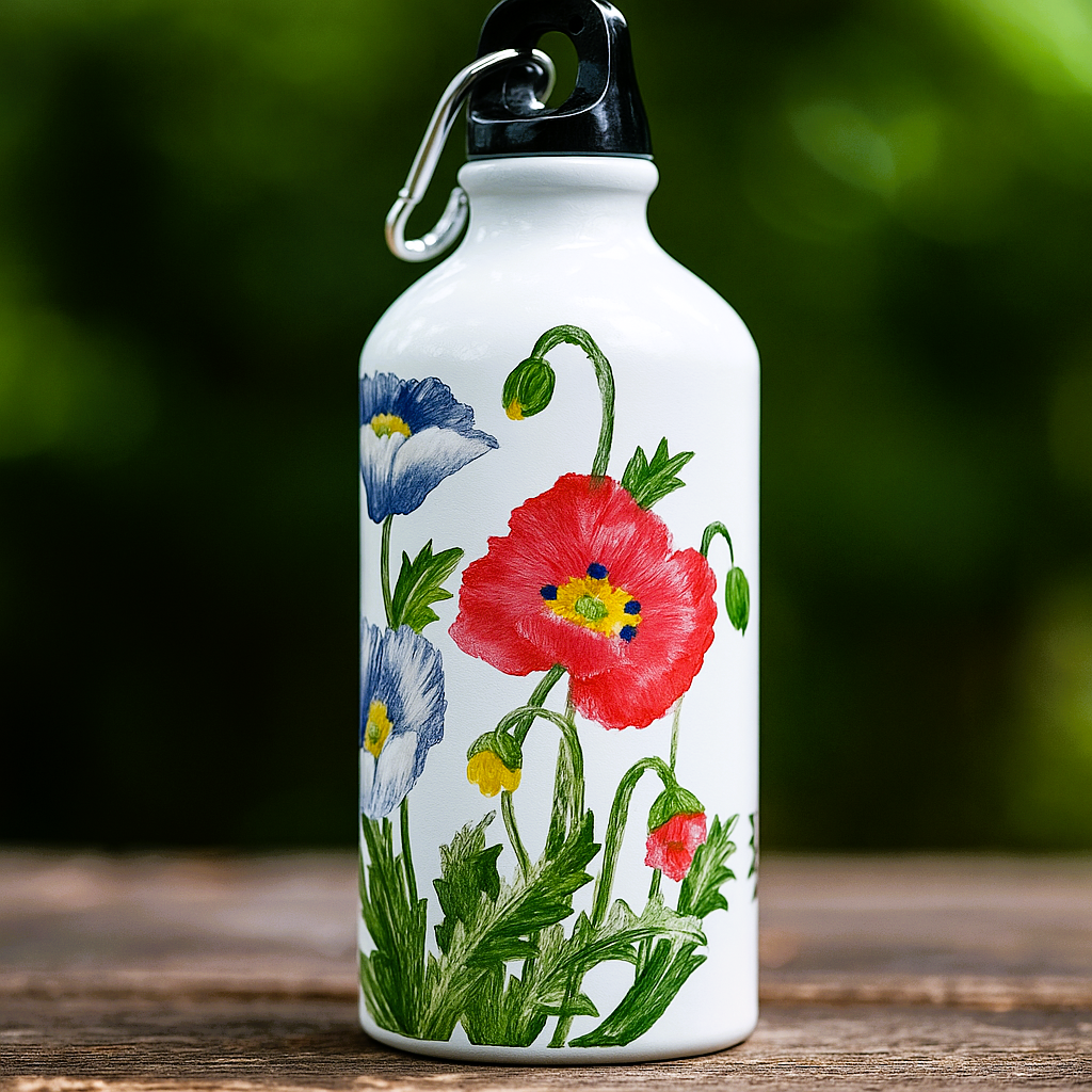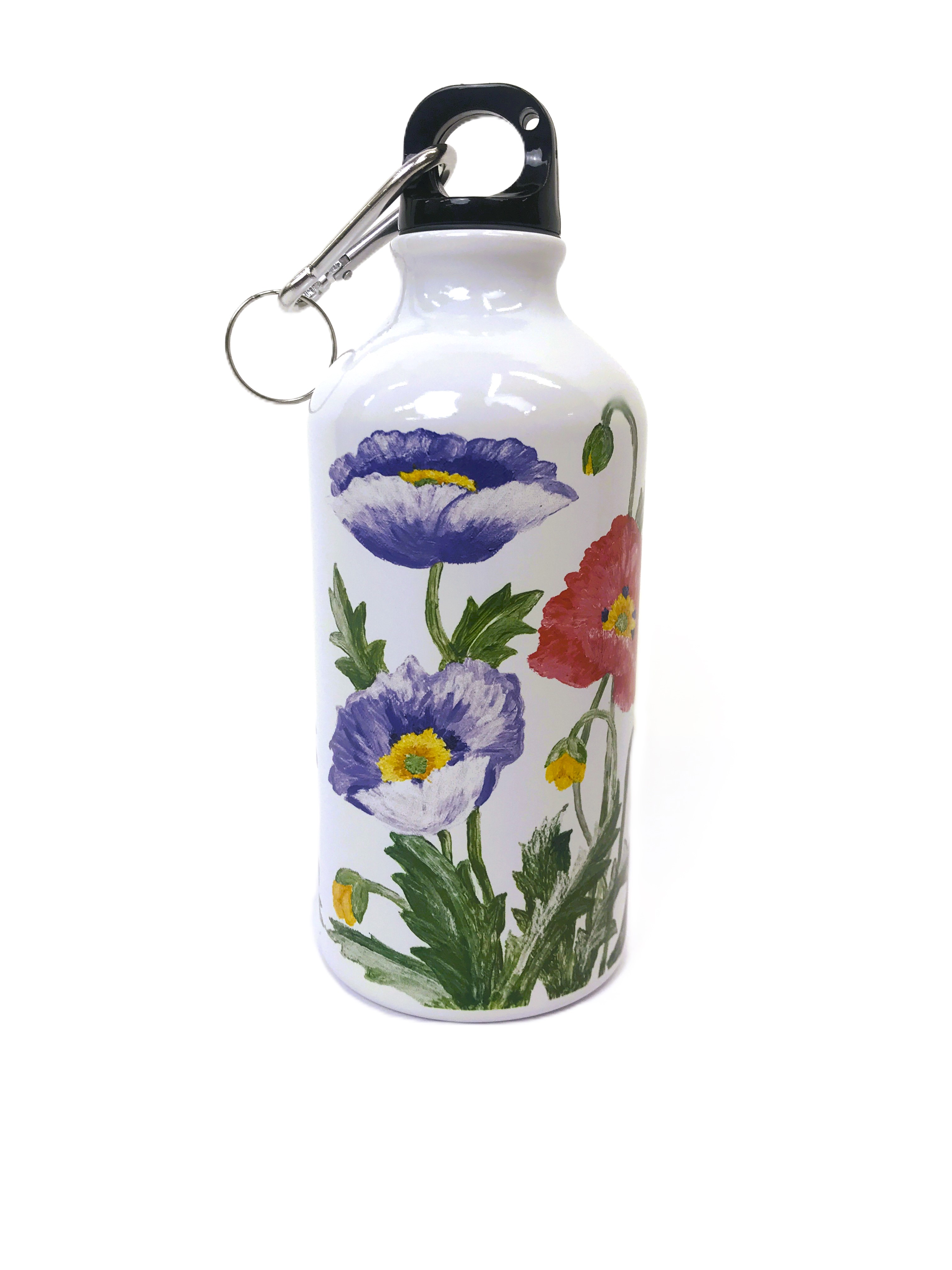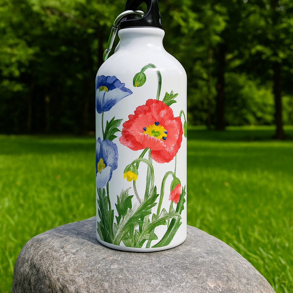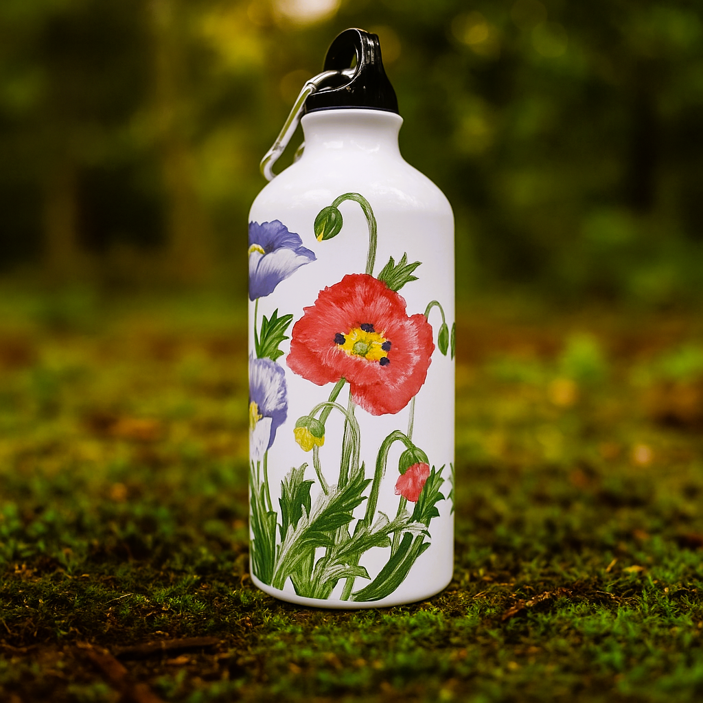 Caratterizzata da un’illustrazione botanica vibrante con papaveri rossi e anemoni viola, questa borraccia porta un tocco di colore e freschezza in ogni tua giornata.