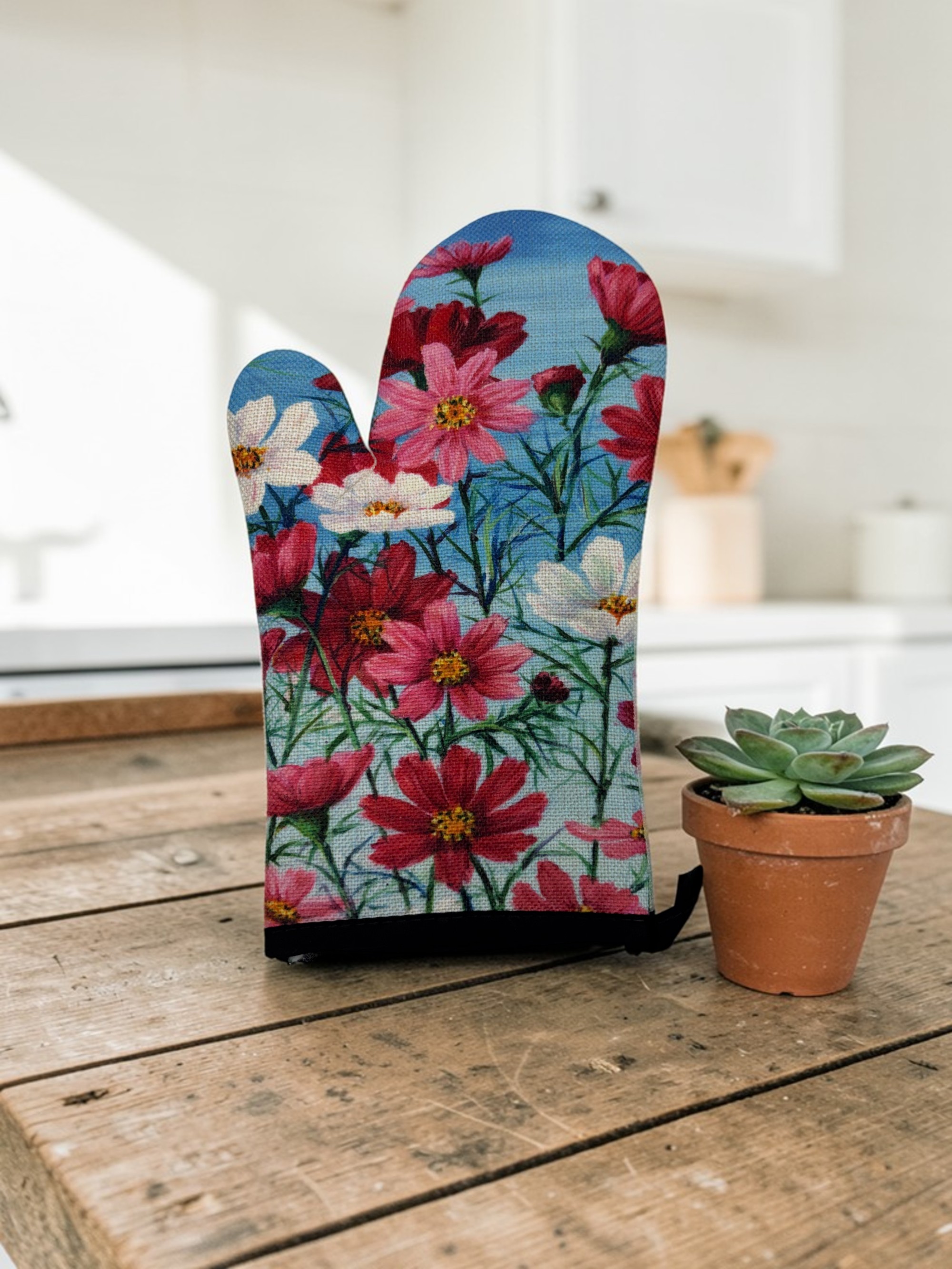 Porta l'allegria di un giardino estivo tra i tuoi fornelli con il Guanto da Forno Margherite Rosse e Bianche.