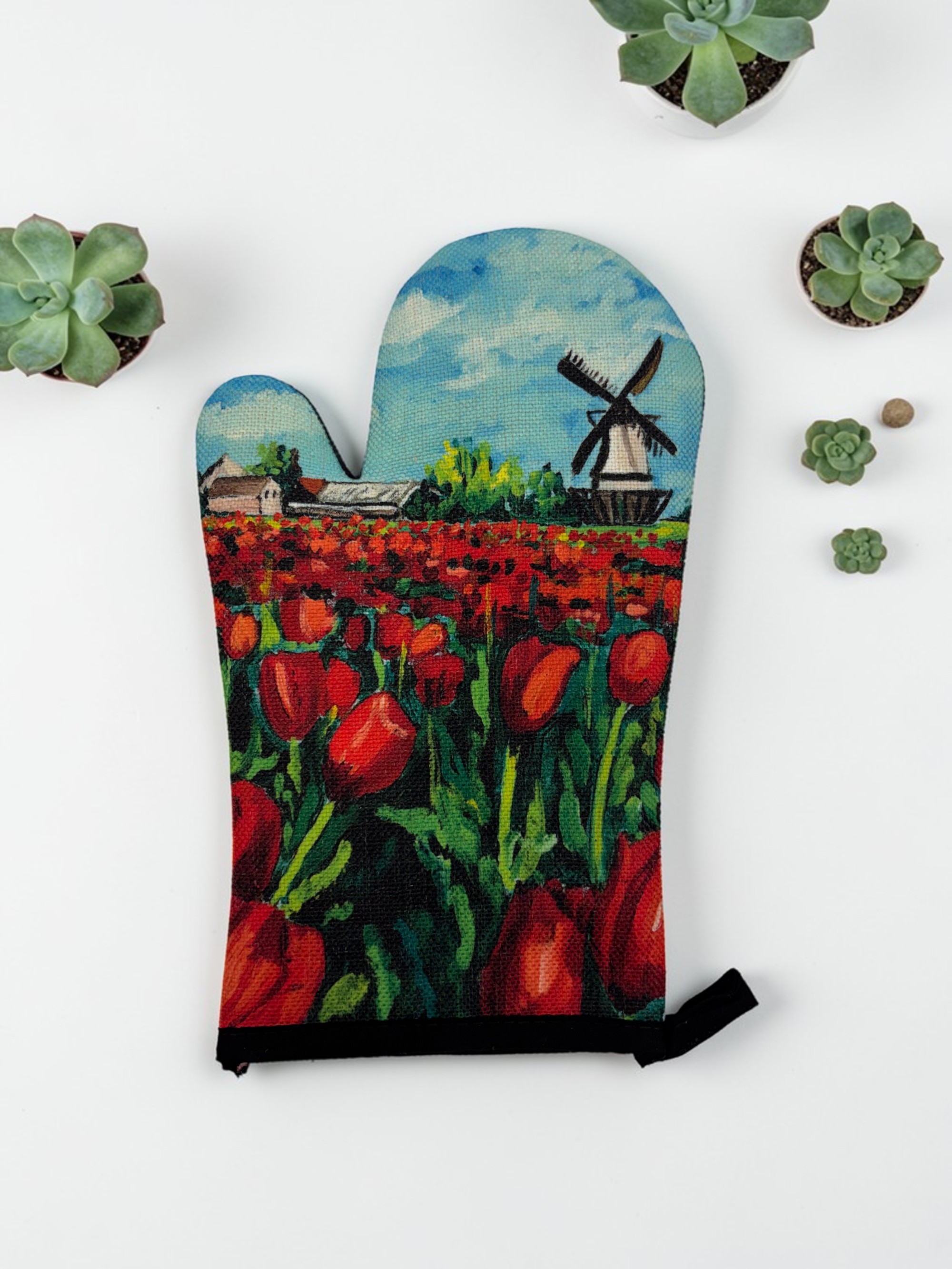 Dai un tocco di colore e raffinatezza ai tuoi momenti ai fornelli con il Guanto da Forno Tulipani Rossi.