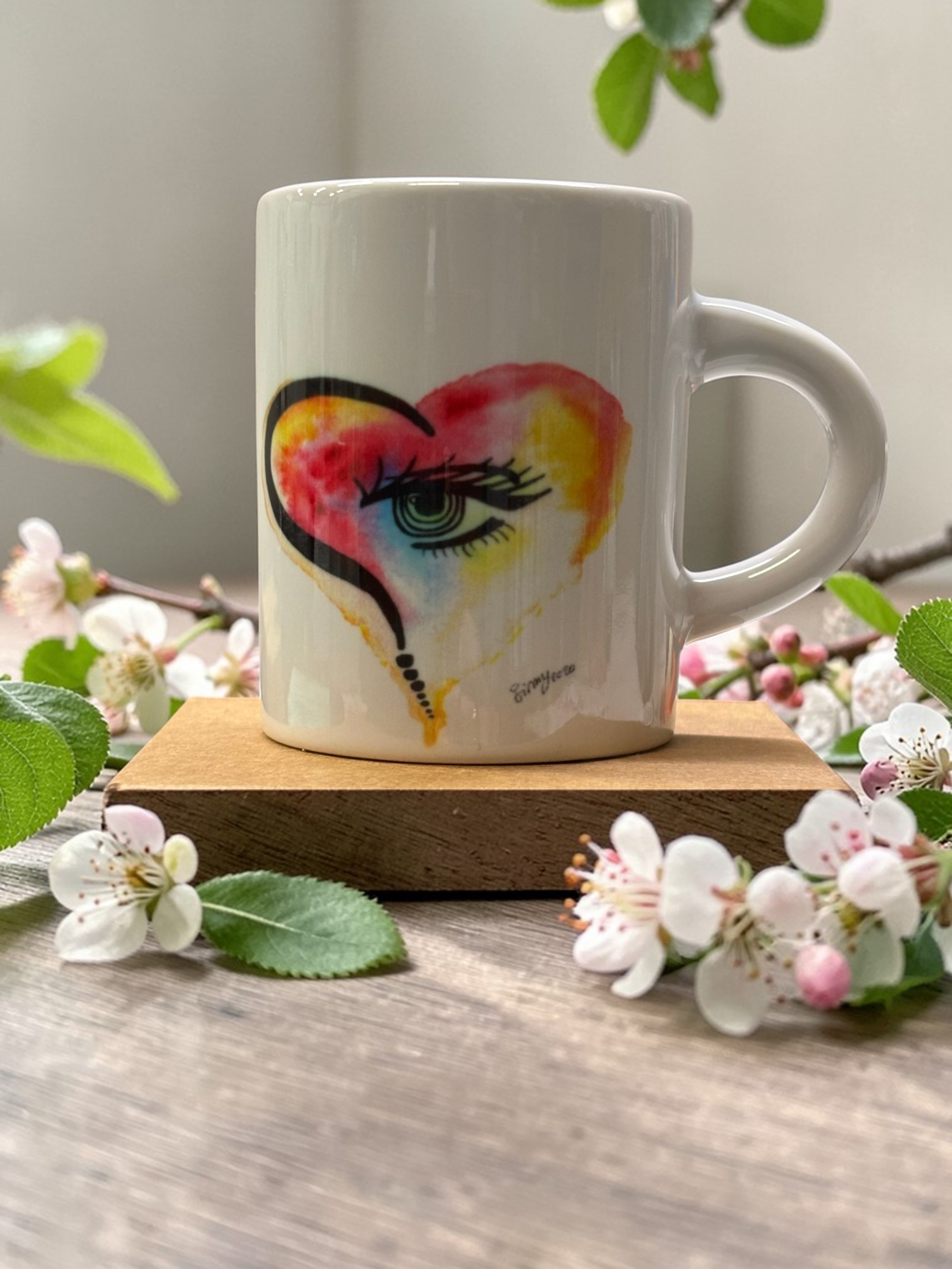 Realizzata in ceramica, la tazzina mette in risalto ogni sfumatura cromatica e ogni dettaglio delle ciglia, rendendo ogni pezzo unico.