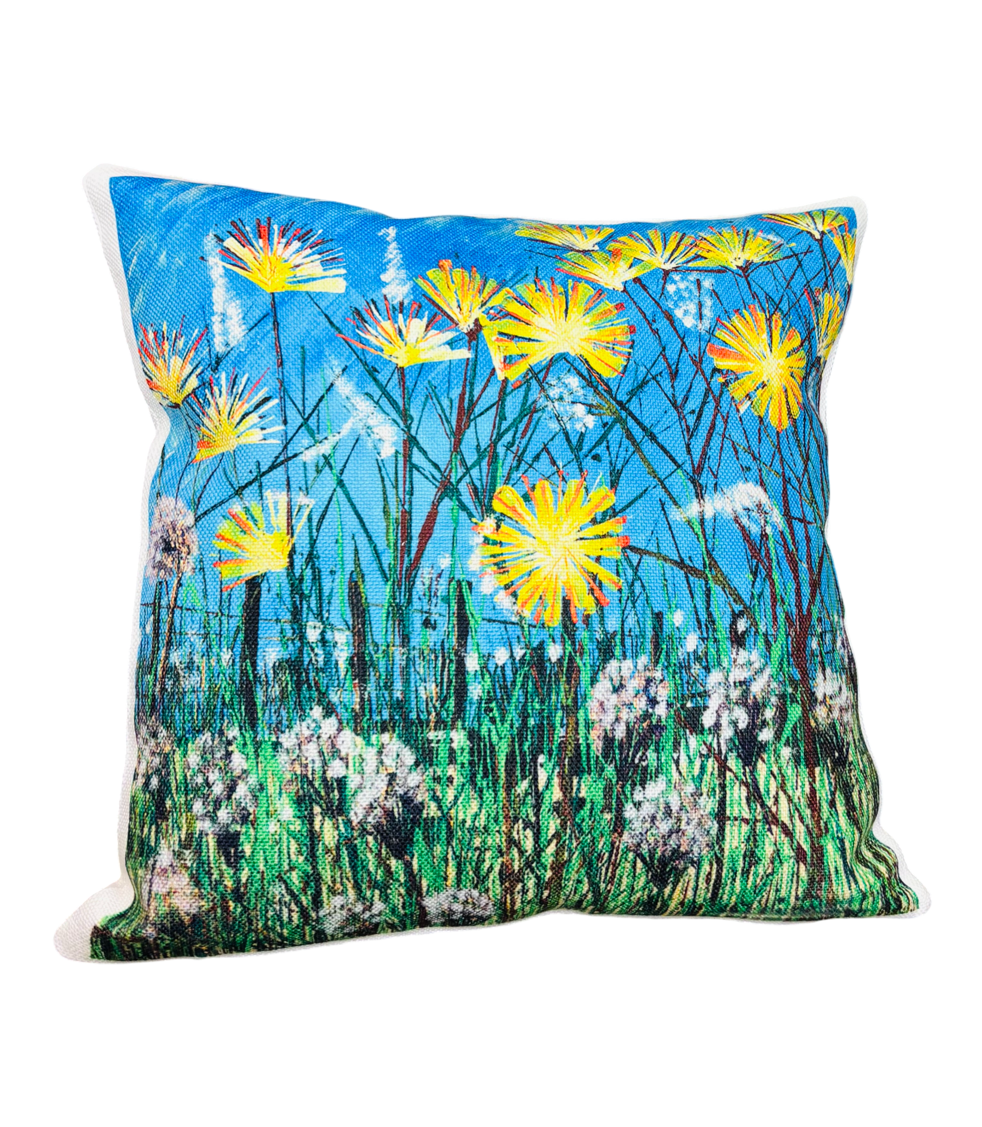 Cogli l'ispirazione della natura. Aggiungi al carrello il Cuscino Prato con Fiori Gialli e Soffioni!