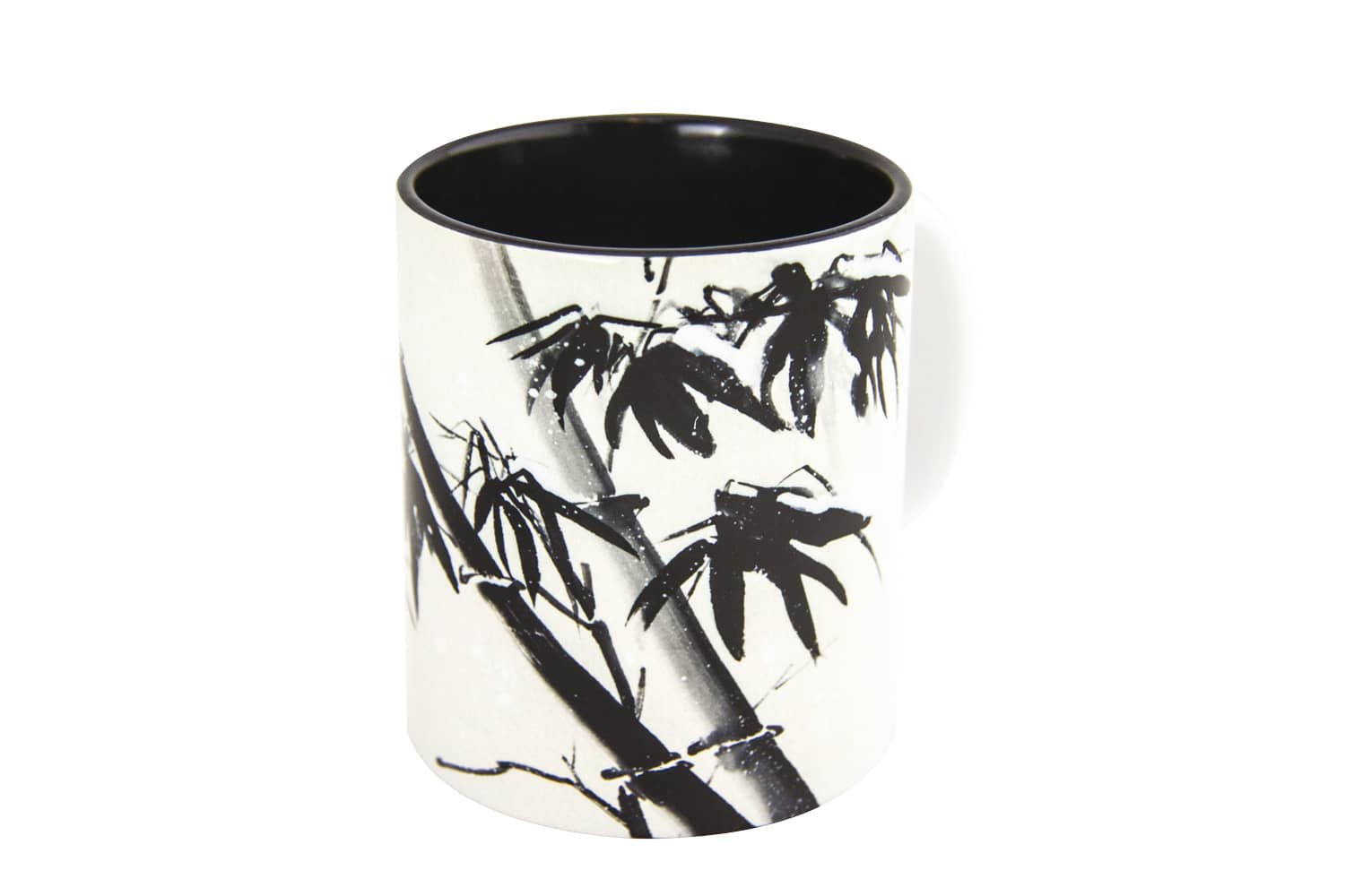 Fiocchi di neve e canne di bambù dipinti sulla superficie della tazza, creano un contrasto tra il colore naturale della ceramica e la bianchezza della neve.